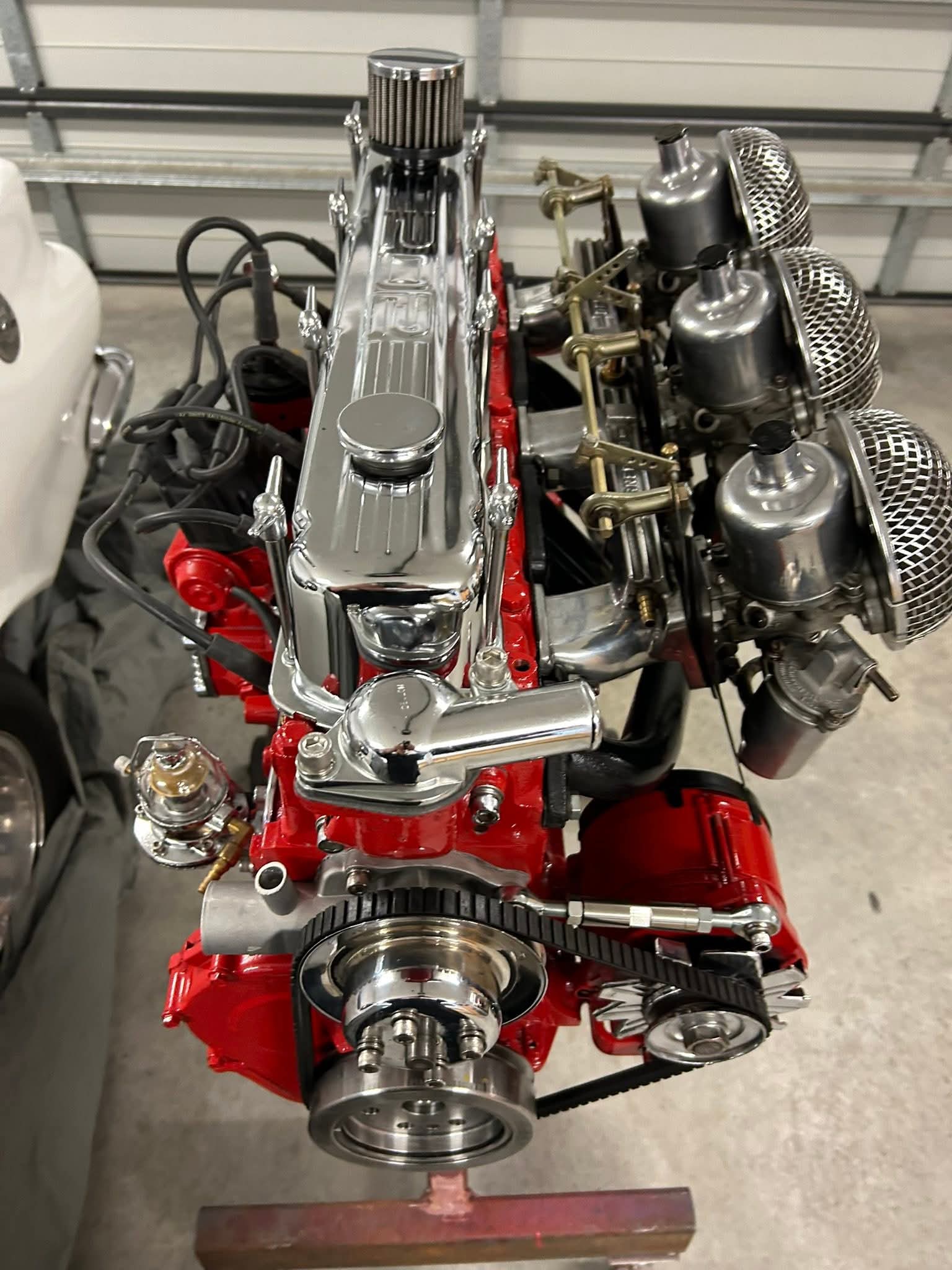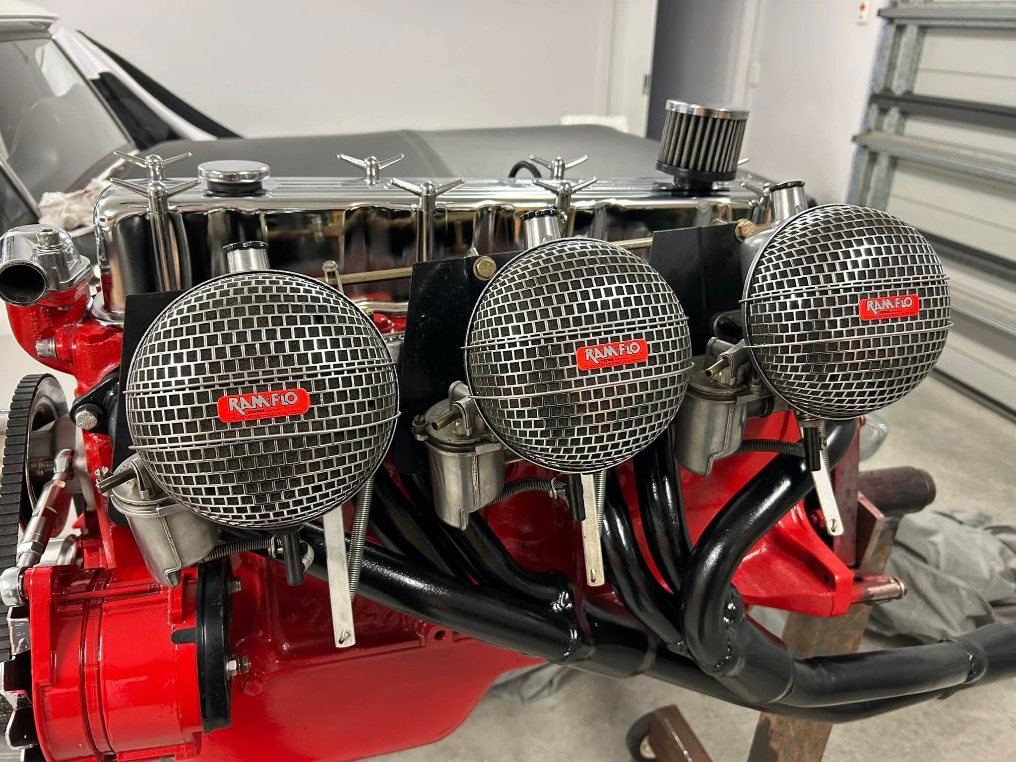 Triple 1 ¾ inch SU carbies on polished Warneford manifold